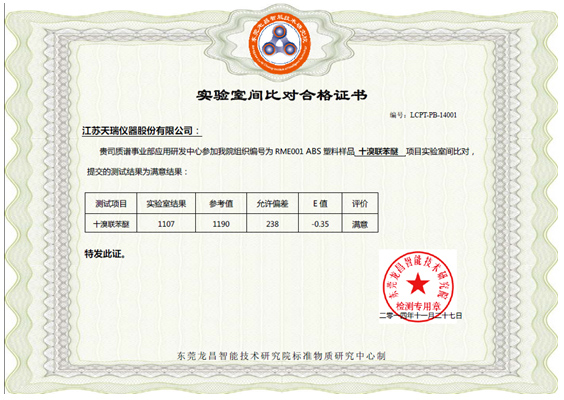 附錄3:實(shí)驗(yàn)室間比對(duì)合格證書(十溴聯(lián)苯醚)