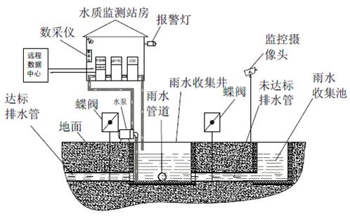 雨水排放綜合監(jiān)控系統(tǒng)可應用于企業(yè)雨水集中排放口的水質(zhì)在線監(jiān)測和管理。監(jiān)控系統(tǒng)由取樣預處理系統(tǒng)、監(jiān)測設備、排放控制系統(tǒng)及數(shù)據(jù)傳輸?shù)榷鄠€系統(tǒng)組成。