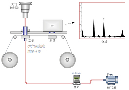 儀器以恒定的工況流量將空氣吸入顆粒物切割器中,以PM2.5為例,動(dòng)力學(xué)直徑在2.5um附近及以下的顆粒污染物進(jìn)入到儀器的富集系統(tǒng)中。經(jīng)過(guò)一段時(shí)間的富集后,富集系統(tǒng)自動(dòng)切換成β射線(xiàn)分析系統(tǒng),利用β射線(xiàn)的衰減與顆粒物的質(zhì)量濃度成指數(shù)的關(guān)系,對(duì)顆粒物的質(zhì)量濃度進(jìn)行分析。然后卷膜系統(tǒng)地將富集有空氣顆粒物的濾紙移動(dòng)到X射線(xiàn)熒光分析系統(tǒng),分別利用X射線(xiàn)熒光的能量和強(qiáng)度對(duì)顆粒物中的元素成分進(jìn)行定性和定量的分析。