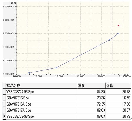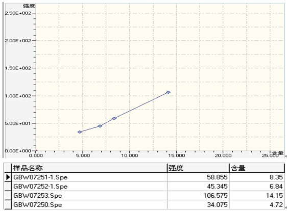 ③ .白云石國(guó)標(biāo)樣Mg的工作曲線與相關(guān)數(shù)據(jù)