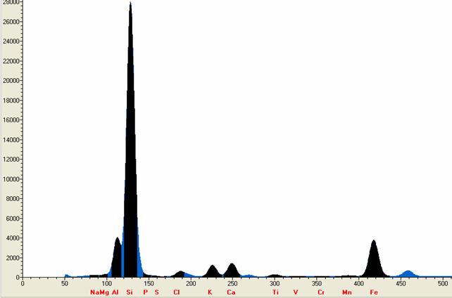 以下使用EDX 3600B型對(duì)鐵礦國(guó)標(biāo)樣GSR-5實(shí)際測(cè)試的所得的譜圖,工作曲線等相關(guān)數(shù)據(jù):