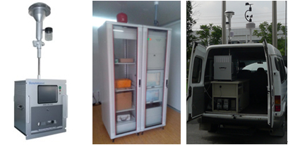 圖1 天瑞儀器EHM-X200大氣重金屬在線(xiàn)分析儀圖片(從左到右分別為儀器主機(jī)、站房機(jī)柜上的儀器和車(chē)載儀器)
