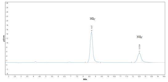 表1. 亞硝酸鹽及硝酸鹽的標(biāo)準(zhǔn)曲線濃度(μg/mL)