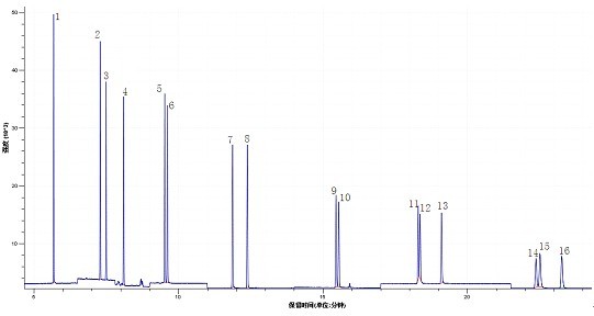 16種PAHs標(biāo)準(zhǔn)品SIM掃描離子流色譜圖